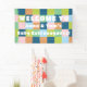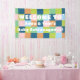 Welcome guests, friends and family to the baby shower with this cheerful and fun customized banner featuring a pattern of colourful squares of navy, light blue, mint, spring green, soft orange and pale pink.