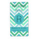 Add your own label to those mini wine or champagne bottles, at your wedding, with this stylish chevron pattern custom label done in teal, blue, mint green, turquoise blue and white. A turquoise band, at the bottom, and a turquoise circle, in the middle has a single teal one letter monogram, and text, on the bottom band. Personalize the dark teal text and monogram, for your special day.