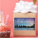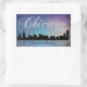 Beautiful colourful Chicago Illinois skyline with sunset colours of rose, peach, blue and blue green with soft stars and Chicago in fancy silvery font. Couple's name can easily be edited on this design. Perfect for the Chicago couple or Chicago themed party.