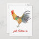 I love the painted chickem and the witty "just chicken in" Very cute to say "hello" by mail. cute colorful chickem nicely printed
