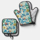 Colourful Chinoiserie Traditional Floral Pattern Oven Mitt & Pot Holder Set
