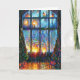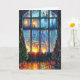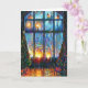 Colourful Christmas card with a painting of a large window and candle lights. The inside of the card is blank for personalized greeting.