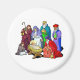 A bright colourful christmas nativity scene with the holy family, shepard boy and the 3 kings.
