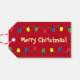 Colourful Christmas tree lights gift tag labels with string. Cheerful coloured xmas light bulbs for the Holidays. Custom name and seasons greetings like Merry Christmas or Happy Holidays! Cute colourful x-mas cartoon design for men women and kids. Whimsical funny typography. Matching wrapping available too.