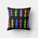 Colourful Christmas Trees on Black Throw Pillow