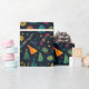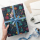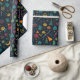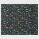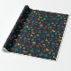 Brightly coloured wrapping paper features a playful pattern of Christmas trees, ornaments, and festive treats, perfect for adding joy to gift-giving during the holiday season.