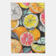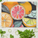 This cute kitchen towel is a vibrant and whimsical addition to your kitchen essentials. It features a unique ink illustration of lemons, oranges, and grapefruits, each sliced open to reveal their vibrant insides. The pink grapefruit, yellow lemon, and orange insides are painted with bold, eye-catching colours that pop against the black background.