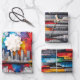 Colourful city skyline with watercolor splashes wrapping paper sheet