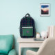 Stylish looking backpack done in the teal, mauve and black clan Cooper Scottish tartan pattern. Graphics of a teal and white damask pattern accents the top of the teal coloured pocket area. Personalize the one letter monogram to suit your needs. Great for school, work, travel and more.