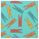 Colourful fabric pattern of old wooden clothes pegs on blue