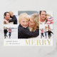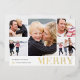 Modern and lighthearted Christmas photo collage card features five images in a collage layout with "MERRY" along the bottom in gold foil lettering. Personalize with your holiday greeting (shown with "Warmest Wishes"), your family name, and the year (tucked in neatly alongside the letter Y).