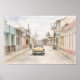 Bring timeless charm and nostalgic elegance into your space with this vintage Havana street watercolor painting, inspired by the iconic architecture and everyday life of historic Cuba. This artwork features a classic old car parked along a colourful colonial street, surrounded by pastel-toned buildings, textured facades, and delicate overhead wires that evoke authentic Old Havana city vibes.