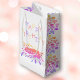 Colourful Colour Blop Girly Happy Birthday Small Gift Bag. Fun birthday bag with colourful colour blob - splash in pink, purple, orange and yellow colours. Personalize with the name and make a fun personalized gift bag for a birthday boy or girl.