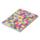 Squares of graph paper coloured in by hand with coloured pencils in random colours. No two adjacent squares have the same exact colour. Graph paper squares outlines are made up of light blue lines.