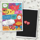 A colourful comic book pop art style wedding design. A cute and fun comic book themed illustration with bright colours and wedding themed superhero action drawings. Comic book style typography is used in this wedding design. An ideal wedding design for anyone who loves super hero designs, comics, cartoon style illustrations, colourful action filled designs and pop art! A bright and modern wedding invitation design with fun and unique comic book elements. Matching wedding stationery items and other wedding invite formats are also available.