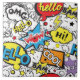 A vibrant comic-style pattern filled with colourful speech bubbles and pop art elements featuring words like hello, wow, cool, bam, and hi. The design uses bold shapes, halftone dots, lightning bolts, and stars, creating a fun retro comic book aesthetic perfect for playful prints and modern pop art themes.