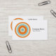 A business card template with an attractive colourful concentric circle motif, creating a clean modern design suitable for many types of business. Company name and business on the front of the card. Name, address, telephony, email and web address on the reverse with a repeat of the motif. The card can also be further customized.