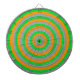 Customizable Dart Board printed with a colourful design of concentric circles.