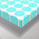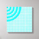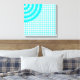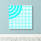 Customisable Colourful Concentric Circles Canvas with white background below a second background of small tiled concentric circles an finally the same concentric circle placed large, and cropped to reveal only one quarter of the circle, in the corner of the canvas. Four of the same canvas will work together to create a large complete circle in the middle as a split image. The background "white" can be changed to the colour of your choice.
