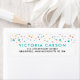 This Colourful Confetti Small Return Address label features confetti in bright colours of teal, purple, yellow, blue and pink with faux gold glitter. For enquiries about custom design changes by the independent designer please email paula@labellarue.com BEFORE you customize or place an order.