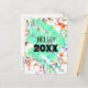 This new year designed postcard cover features colourful confetti and a teal squiggle. Personalize the text on the front and back, remove any text or click customize to select a different font style, size, and colour you prefer.