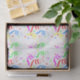 Colourful tissue wrapping paper with graphics of blue, red, green, yellow, and pink confetti and ribbons. Customize to add your own text.
