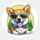 Colourful Corgi in Sunglasses Classic Round Sticke Sticker