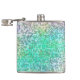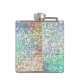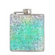 Colourful abstract mosaic with blues, greens, pinks, oranges, and silver.