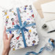 Fun and colourful hand-drawn crayon drawing of stick figure girls, cats, dogs and random doodles. I've drawn this design to look like it was made by a child. This wrapping paper would be cute for a child's birthday or other present.