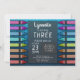 Colourful Crayon Rainbow Glitter Art First Birthda Invitation