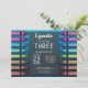 Sapphire blue faux glitter sparkles behind an array of colourful crayons. Celebrate your child's first birthdays with this easy to update template. Simply fill out the name, age, date, time, location of party and any RSVP notes or other information. Available in many sparkly rainbow colours and designs.