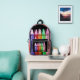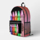 This unique designed backpack was created with digital oil paint on a tablet. Behind the crayons is a black colour background gives the image a 3D effect.