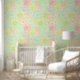 Colourful Cream Doodle Floral Pattern Wallpaper