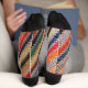 Want the fashion of crocheted socks without the draught and risk of snags? Take a photo of your favourite crochet pattern and put it on a pair of custom socks! This striped crochet chain pattern provides a rainbow of colours. No need to crochet or knit handmade socks for your loved ones anymore. This winter you can simply save your time and get them the next best thing.