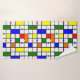 This towel set has a green washcloth, an orange hand towel, and a bath towel with a mid-century modern design of a grid with coloured squares and rectangles. It also has coloured circles placed on the grid lines. If you like the design but prefer different colours, message me.