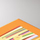 Orange framed print in colourful floral and stripe design. The orange frame can be changed to any colour to match your decor.