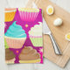 Colourful cupcakes adorn this lovely kitchen towel - a fun housewarming gift and great for a bakery, cafe or sweet shop!