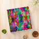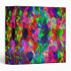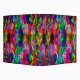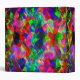 Stamped with colourful image of curved triangles or coloured ripples. In different vibrant colours, yellow, lime green, orange reddish, light blue, pink, lilac, red brownish or dark brown... with changes of tonalities that can cause the perception of curves or waves and some luminosity in some traces.
