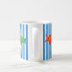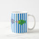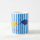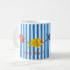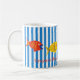 A delightful, happy, fun mug to customize, personalize or purchase plain. Blue stripes and primary coloured fish paired together by artist, dagdart.