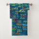 Colourful Custom Names Stylish Pattern Blue Bath Towel Set