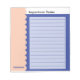 An aesthetic colour blocks notepad in Pink, Klein Blue and White combo, with a coquette touch of scallop edging. Customize a purpose heading, such as Memo, Shopping List, To Do List, Checklist etc. Add a name to personalize the notepad, making it special. This notepad is also ideal to put inside your bag and make on-the-go note-taking convenient.