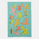 Colourful Cute Dogs Puppies Teal Kitchen Towel