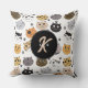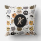 Colourful Cute Funny Cats & Paw Pattern Monogram Throw Pillow