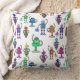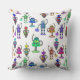 Colourful cute robots on white background throw pillow