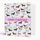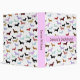 A great binder to use for any dog lover. It features little colourful dachshunds all over the front and back. The front has a pink stripe through the centre with brown text. The spine is also pink with brown text.