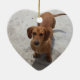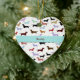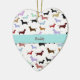 Put your family's pet dog on the Christmas tree this year and for years to come, with this adorable heart shaped Christmas tree ornament. The front has a white background with lots of little weenie dogs on it. A graphic of an aqua ribbon runs through the centre awaiting your text. The back has space for your dog's photograph. Personalize with your own beloved pet's photo and name for a wonderful ornament the entire family will love and cherish.