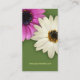 Customizable business / profile card template design with colourful daisy flowers on green background.