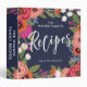 Colourful Dark Blue Boho Flowers Recipes 3 Ring Bi Binder
