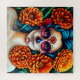 This colourful Day of the Dead sugar skull art features a striking portrait framed by vivid marigolds and flowing teal-blue hair, blending traditional Día de los Muertos symbolism with bold contemporary illustration. The rich orange florals, intricate face detailing, and luminous jewel tones create dramatic visual impact while still feeling elegant and expressive. Perfect for a creative living space, festive gathering area, art studio, or cultural celebration display, this design brings warmth, heritage, and personality to any setting. It also makes a thoughtful gift for art lovers, Halloween enthusiasts, or anyone drawn to vibrant folk-inspired aesthetics.