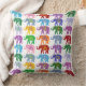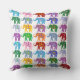 Multi-coloured rows of decorative elephants with background colour you can customize.
